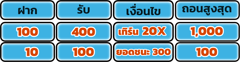 3. จบโปรโมชั่นเดิมแล้ว ไม่สามารถนำไปรับโปรอื่นๆ ต่อได้ค่ะ หากนำไปรัโปรต่อจะไม่สามารถถอนได้ โบนัสจะเป็นโมฆะทันที